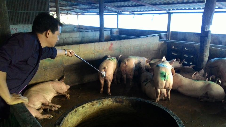 นายสาโรช งามขำ ปศุสัตว์จังหวัดฉะเชิงเทรา นำทีมเจ้าหน้าที่จากสำนักงานปศุสัตว์จังหวัดฉะเชิงเทรา ด่านกักกันสัตว์ฉะเชิงเทรา ร่วมกับ เจ้าหน้าที่ตำรวจจาก สภ.บ้านโพธิ์ และเจ้าหน้าที่ทหารจาก ปอ.พัน.2 รอ.